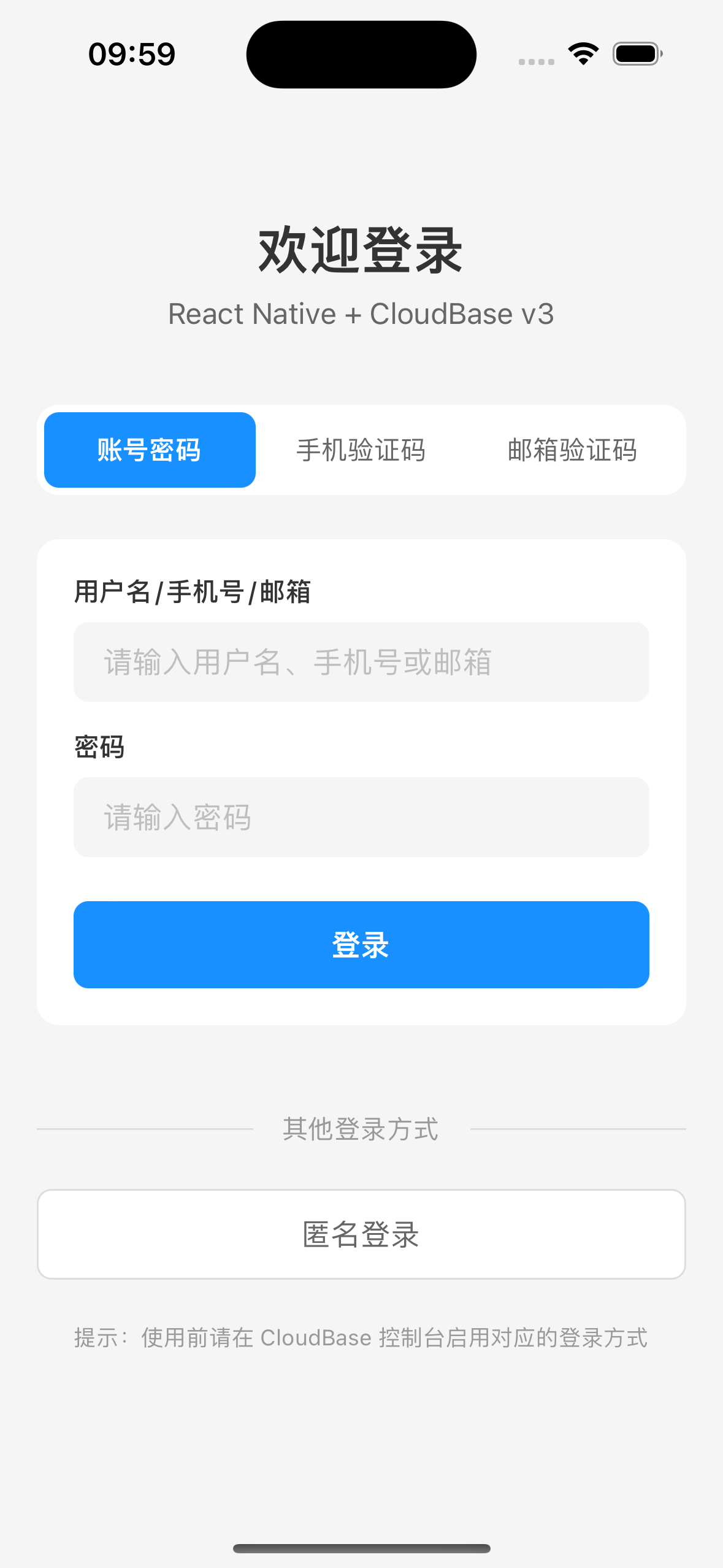 React Native 适配器是云开发为 React Native / Expo 框架提供的专用适配器,让开发者能够在 React Native 项目中无缝使用云开发的完整功能。通过该适配器,您可以轻松实现移动端的云端数据存储、用户认证、文件管理和云函数调用等。
