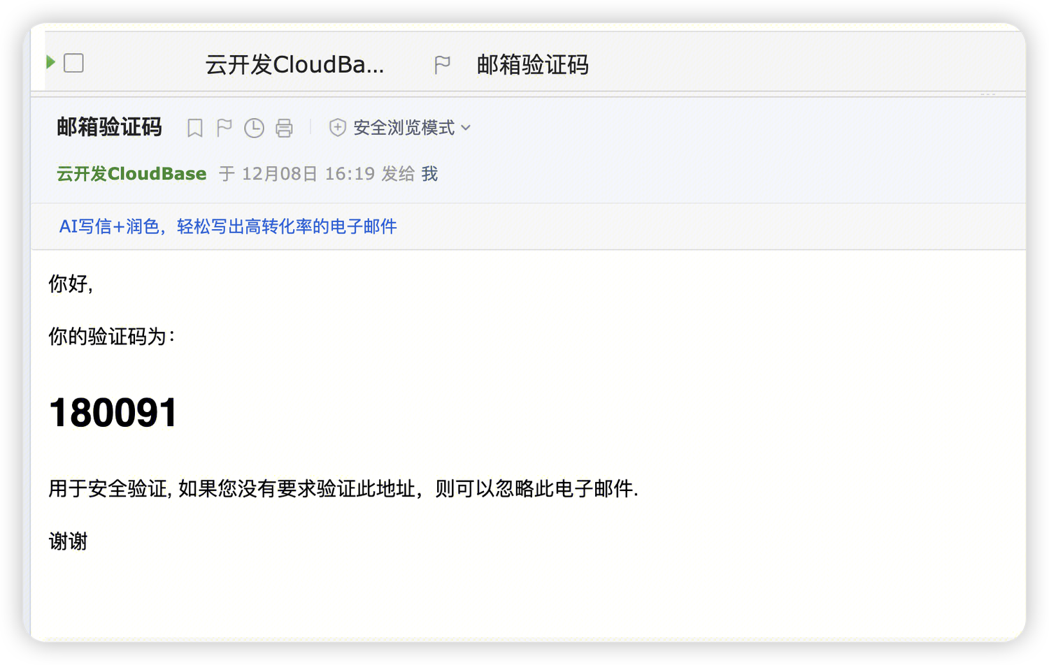 CloudBase 身份认证新增零配置邮件服务,配置时间从 15 分钟降至 1 分钟。同时上线短信速率限制,有效防止资源盗刷。