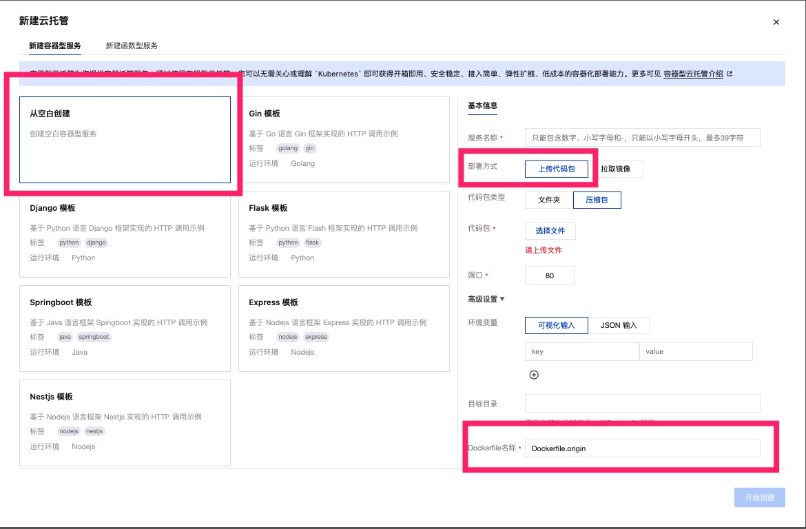 in the root directory. If you wish to use a custom file name, specify the Dockerfile name during deployment as shown below: