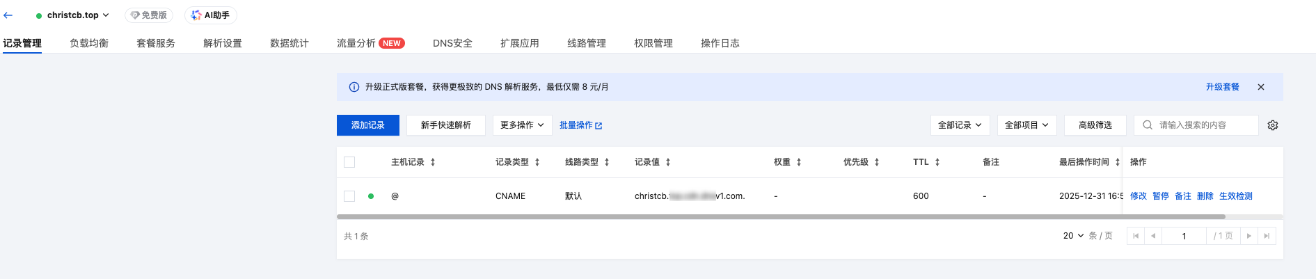 If your DNS service provider is Tencent Cloud, you can add a CNAME record by following these steps: