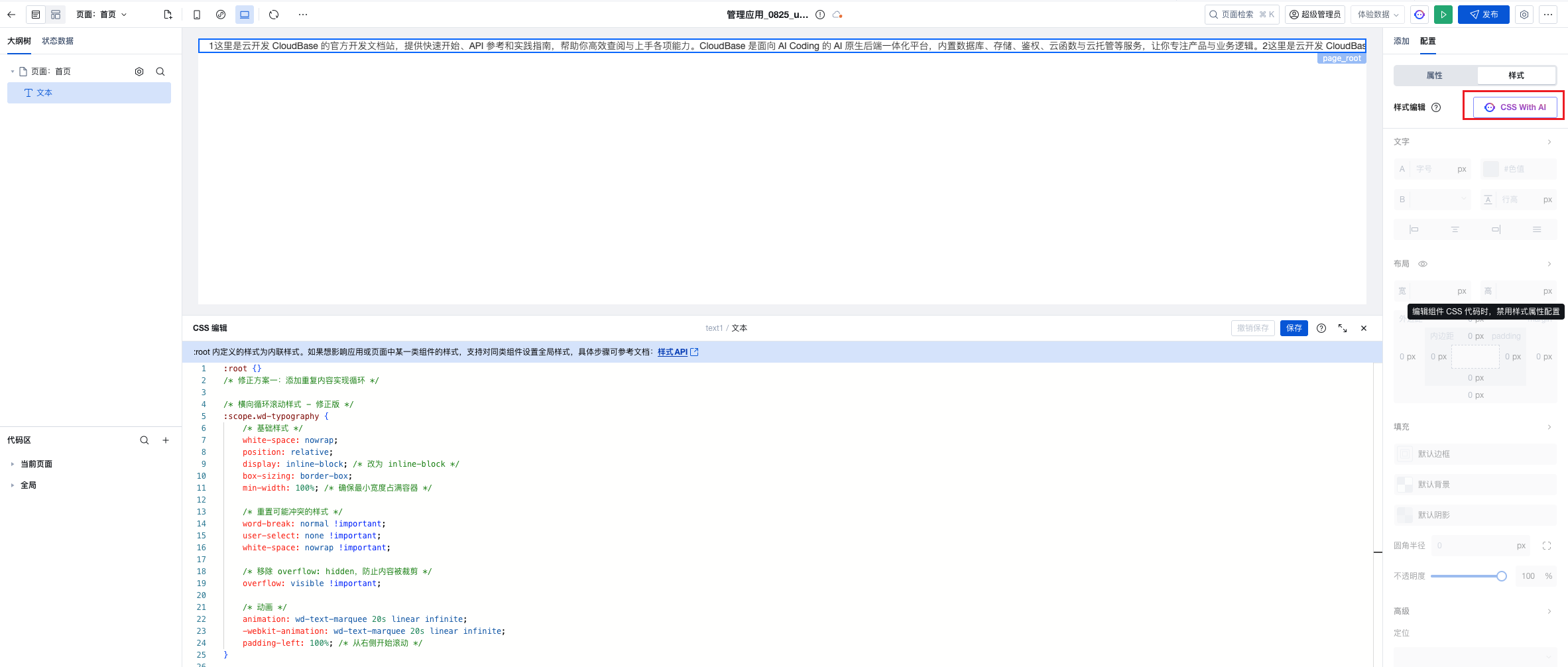 在很多场景中需要展示通知、公告或重要信息时,横向循环滚动的文字效果能够有效吸引用户注意力,本篇文档主要介绍在微搭中如何利用基础组件和自定义样式实现文字横向循环滚动功能。