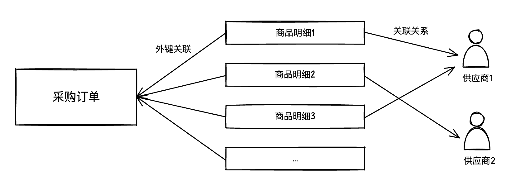 子表单场景用于处理 一对多 的数据录入需求,例如采购订单中需要录入多个商品明细,每个明细包含商品名称、价格、数量等字段。为了高效管理数据,通常将订单和商品明细分别存储在不同的表中,并通过外键关联绑定。