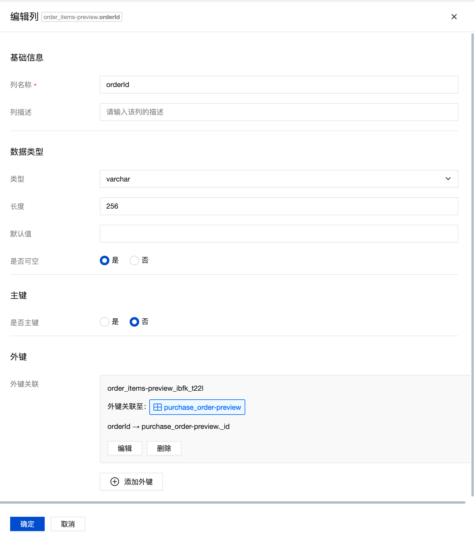 在子表单场景中,主子表通过「外键」方式进行关联: