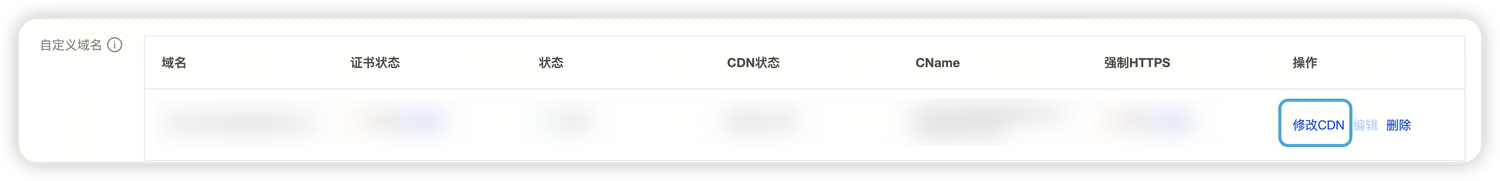 - 点击「修改 CDN 类型」,选择不使用 CDN,修改后会重新生成 CNAME 域名